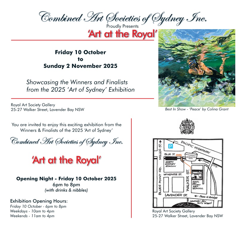 ‘Art at the Royal’ will be showcasing all the winners and finalists from the 2025 Art of Sydney Awards exhibition, at their RAS Gallery in Lavender Bay.